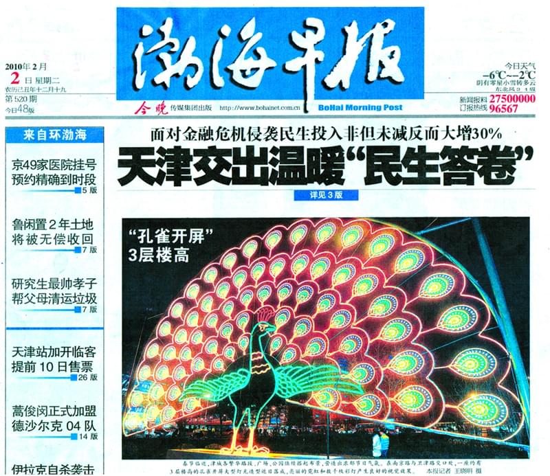 大旗燈飾“孔雀開屏”綻放“津城”