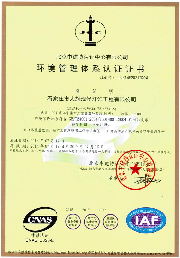 大旗燈飾獲批環(huán)境管理體系認(rèn)證證書、職業(yè)健康安全管理體系認(rèn)證證書。...