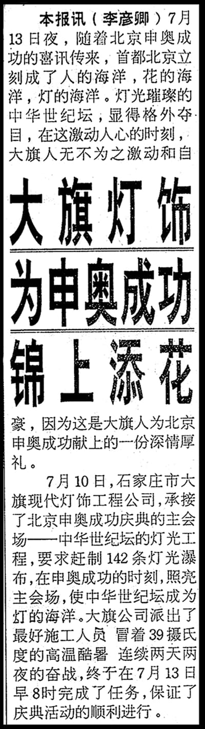 石家莊日報:北京大型現(xiàn)代燈飾出自“大旗”能工巧匠之手